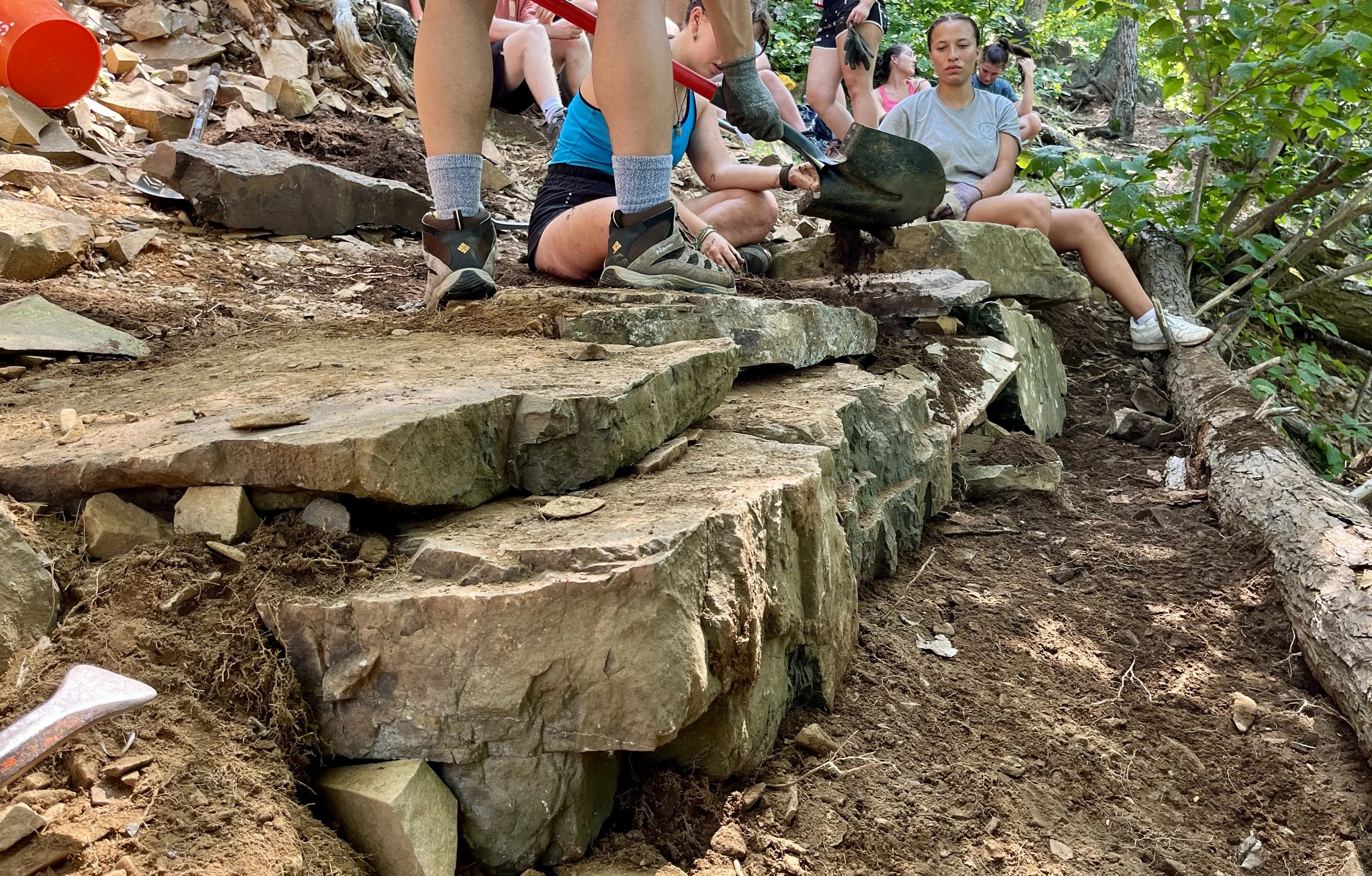 Trail Work: our continued effort to improve the network of trails around Castle Craig and other areas of East Peak took place this spring with several dedicated trail days. We also continued our efforts expanding the retention wall on the undercliff trail of the Main Cliff at Ragged.