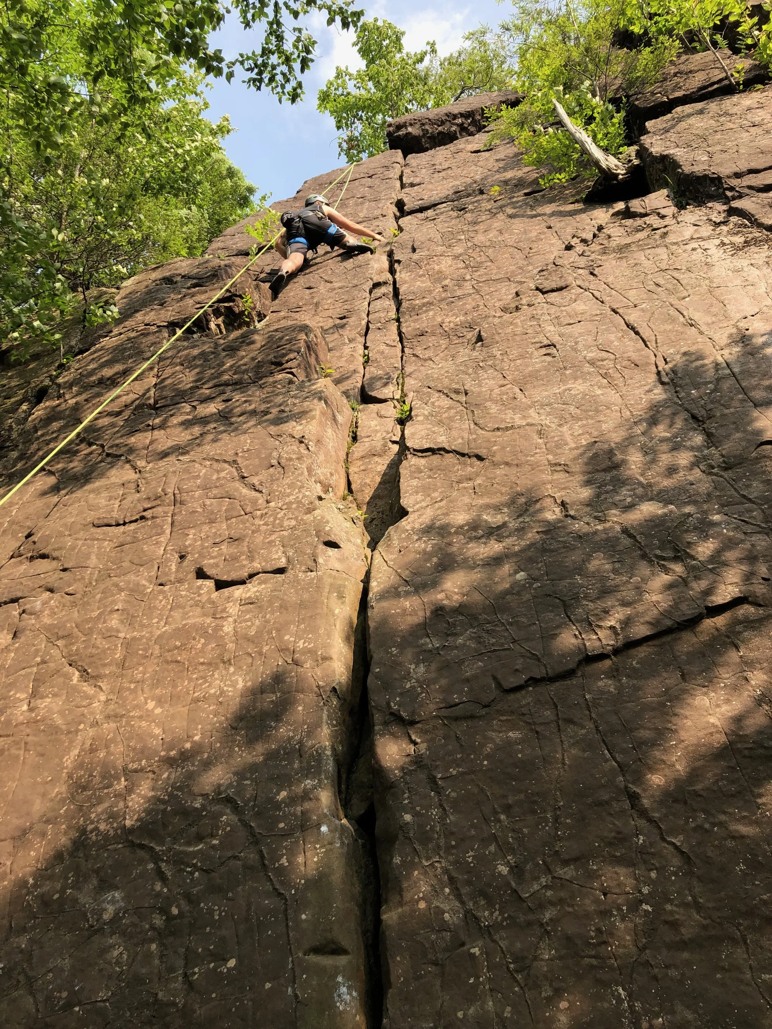Pinnacle is known for its low angle easy to access single pitch climbing. With over 80 climbs of various difficulty there tends to be something for everyone. Most parties can be found at either end of the cliff leaving the middle to feel more adventurous. Pinnacle like many other traprock zones have hard to protect routes along with the popular G rated cracks with bolted anchors. As with all Connecticut traprock climbing, grades are the standard traprock flare. Expect a sandbag here and there.